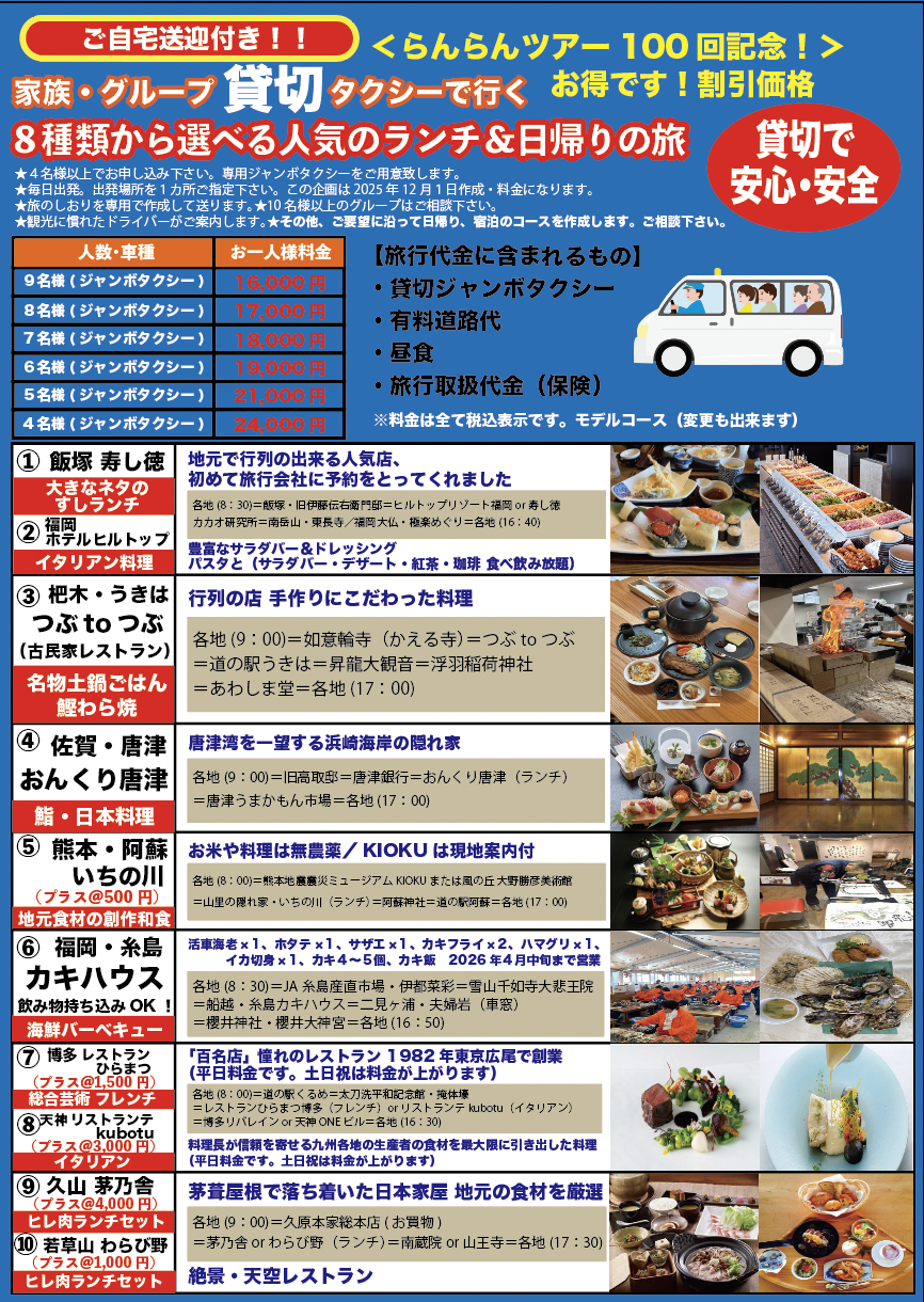 久留米市・大川市・筑後市発・日帰り・宿泊バスグルメツアー